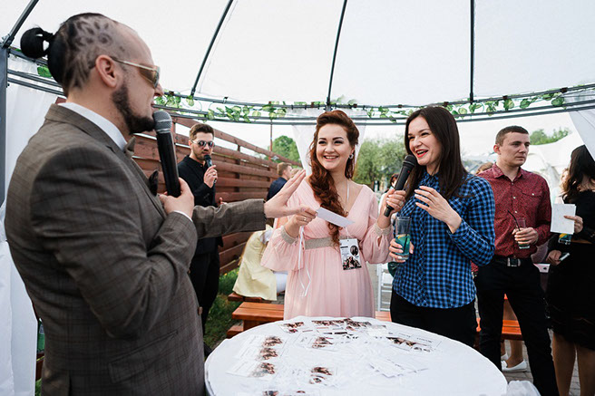 Огромное спасибо за прекрасный и незабываемый вечер) мы все очень довольны вашей работой и в восторге от Вашей харизматичности, открытости и умения найти общий язык со всеми гостями)))