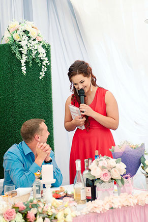 Вы вели у нас свадьбу. Спасибо за этот запоминающийся день! Все было очень хорошо и весело))